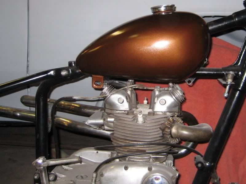 Kupari tankki ja siihen jotain mustaa kuviota, keskiöt kupari, vanteet cromi / valkoiset ja lampunkoppa samalla mitä tankki